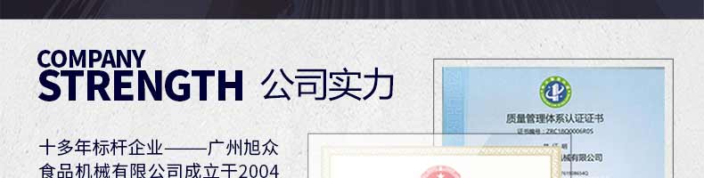 廣州旭眾食品機械有限公司是一家集科研開發(fā),生產(chǎn)設計,營銷服務為一體的現(xiàn)代化生產(chǎn)企業(yè)?,F(xiàn)代化生產(chǎn)車間,精湛制造技術,所產(chǎn)機械歷經(jīng)市場重重考驗,不斷贏得海內外客戶的贊譽。