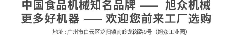 廣州旭眾食品機械有限公司是一家集科研開發(fā),生產(chǎn)設(shè)計,營銷服務(wù)為一體的現(xiàn)代化生產(chǎn)企業(yè)。現(xiàn)代化生產(chǎn)車間,精湛制造技術(shù),所產(chǎn)機械歷經(jīng)市場重重考驗,不斷贏得海內(nèi)外客戶的贊譽。