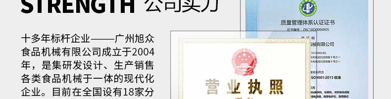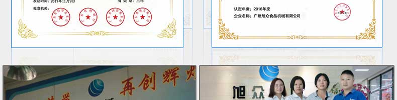 廣州旭眾食品機械有限公司是一家集科研開發(fā),生產(chǎn)設計,營銷服務為一體的現(xiàn)代化生產(chǎn)企業(yè)?,F(xiàn)代化生產(chǎn)車間,精湛制造技術(shù),所產(chǎn)機械歷經(jīng)市場重重考驗,不斷贏得海內(nèi)外客戶的贊譽。