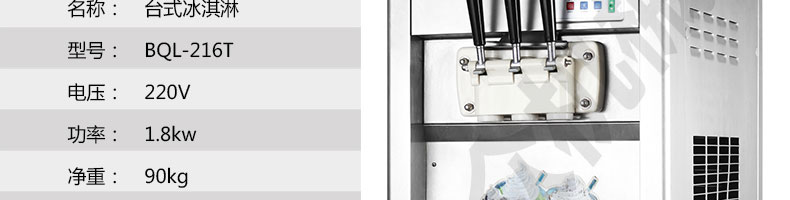 BQL-216T臺式冰淇淋機(jī),●選用國際名牌成熟制冷配套件和高效壓縮機(jī),融合旭眾精湛工藝輔以嚴(yán)格的質(zhì)量控制流程,使產(chǎn)品整體性能及品質(zhì)得以全面提升。●采用全數(shù)字電腦控制系統(tǒng),選用名牌優(yōu)質(zhì)電器元件,先進(jìn)的生產(chǎn)工藝,故障診斷,軟硬任意調(diào)制,自動修復(fù)功能,安全精確,可靠性更高。●專業(yè)成熟制冷系統(tǒng)設(shè)計,選用世界名牌大功率專用壓縮機(jī),大大縮短冰淇淋成型時間,相同時間內(nèi)冰淇淋產(chǎn)量大幅度增加,使您生意火爆時依然得心應(yīng)手,為您創(chuàng)造財富。●安全平穩(wěn)的機(jī)械攪拌系統(tǒng),噪音更低、振動更小,使整機(jī)運(yùn)行性能達(dá)到國際先進(jìn)水平?!翊_保進(jìn)料溫度在0°C~35°C;環(huán)境溫度5°C~40°C勻可正常使用。