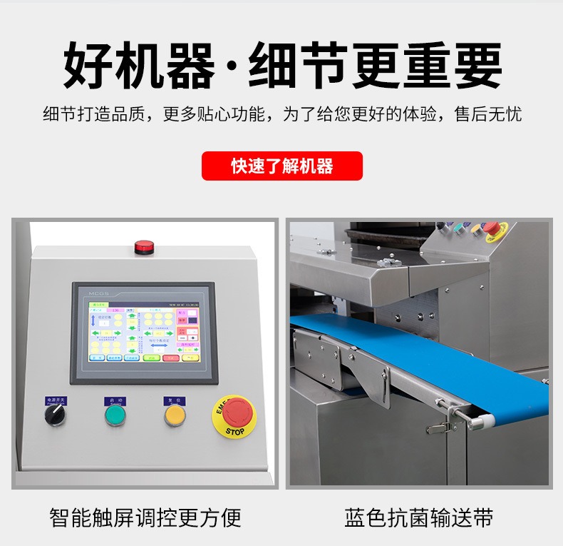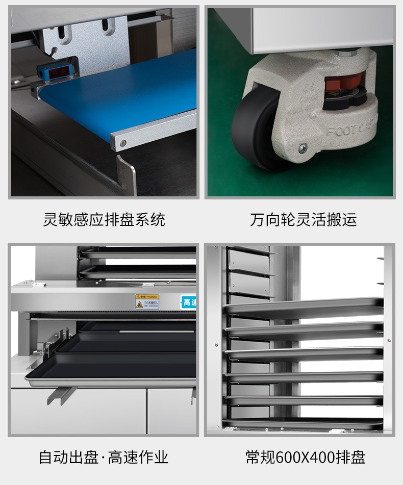 多功能商用高速排盤機(jī),自動(dòng)化程度高,可根據(jù)產(chǎn)品大小自由調(diào)節(jié)列數(shù)、排數(shù),自動(dòng)將產(chǎn)品自動(dòng)地排放在烘盤中,操作簡單,運(yùn)行平穩(wěn)。智能觸屏面板??刂葡到y(tǒng)由三菱PLC和進(jìn)口觸摸屏組成,操作簡單方便。具有故障自動(dòng)診斷,一目了然。