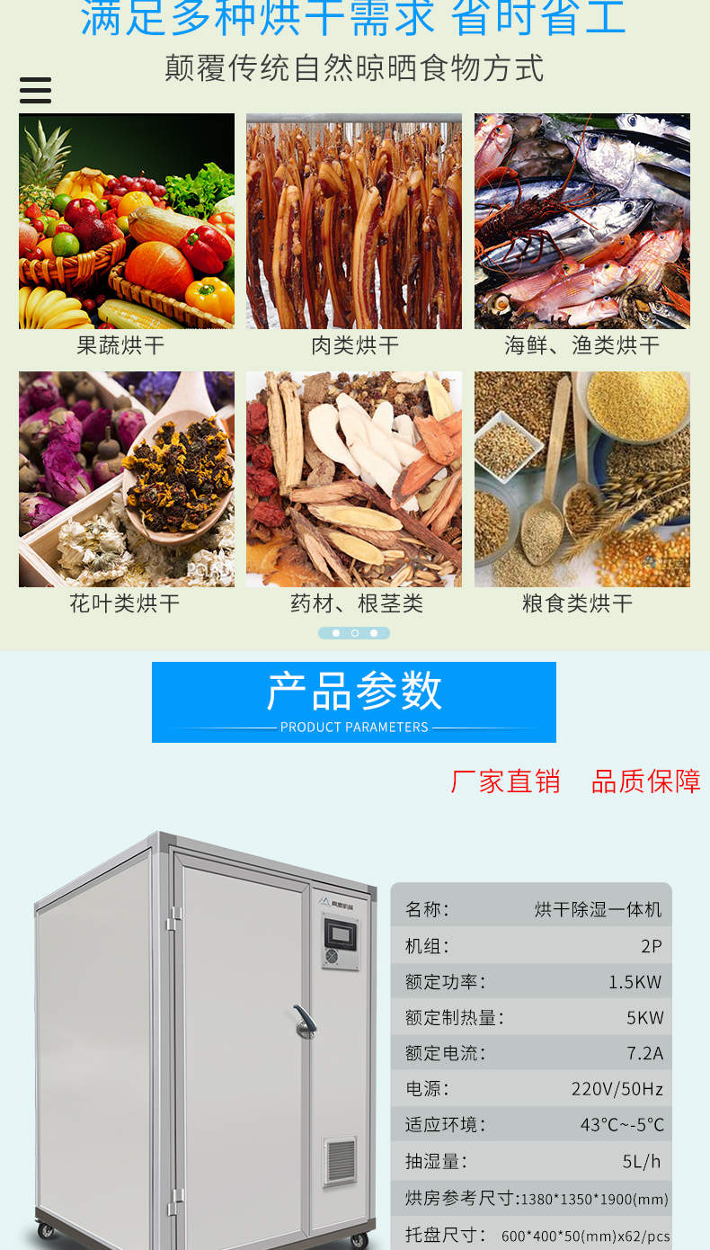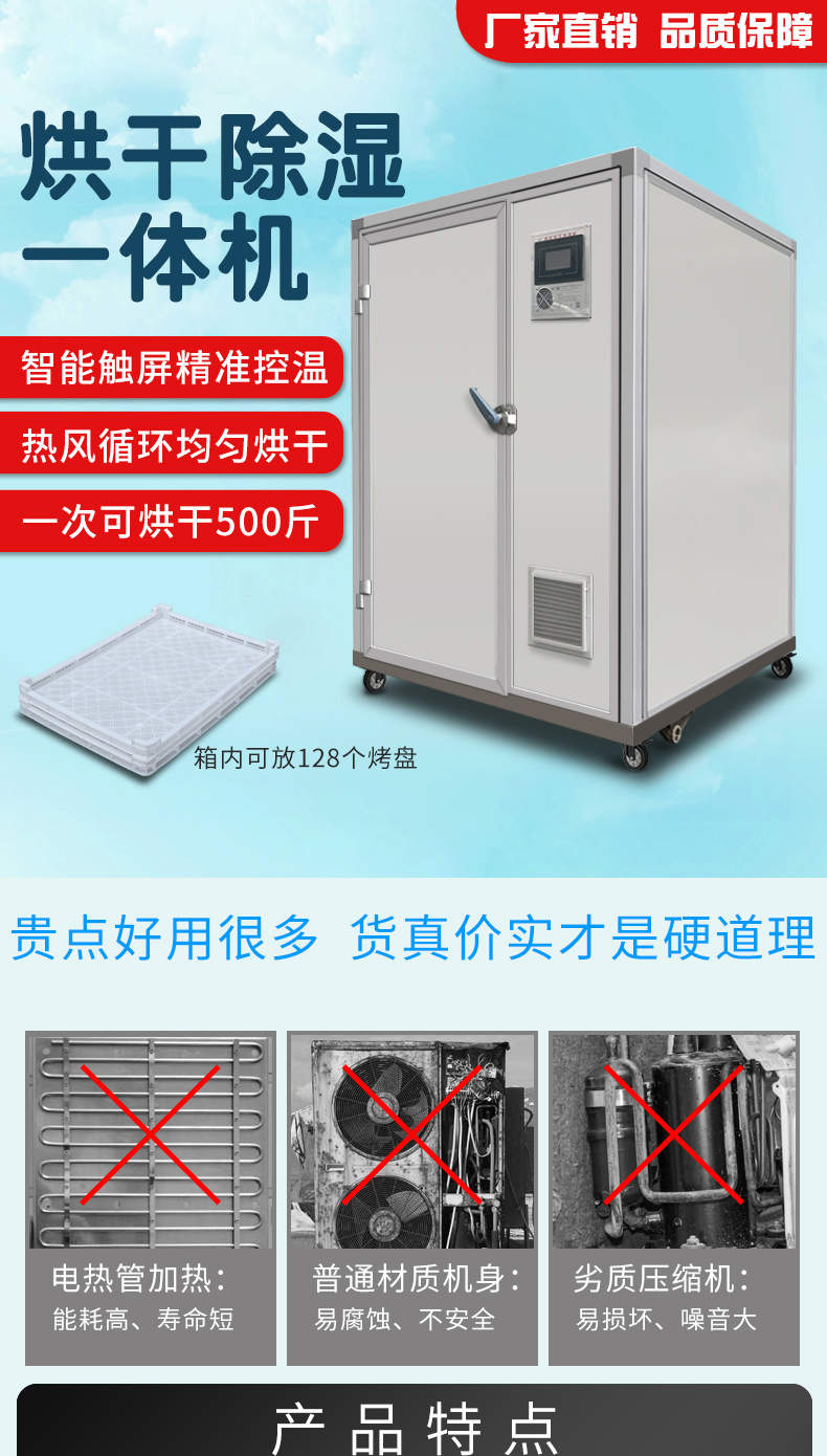烘干除濕一體機(jī),烘干除濕體機(jī),智能觸屏精準(zhǔn)控溫?zé)犸L(fēng)循環(huán)均勻烘干次可烘干500斤,智能烘干時(shí)代出類(lèi)拔萃的新體驗(yàn),1度電能=4度,熱能比傳統(tǒng)電加熱。干燥設(shè)備減少60%以上電能消耗。