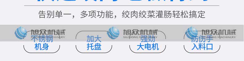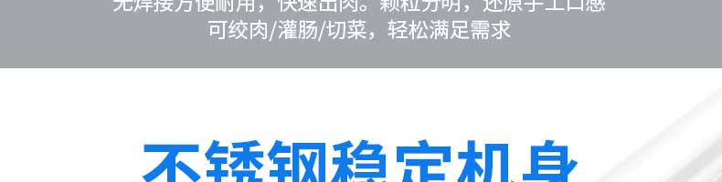 XZL-32A絞肉機(jī),快速絞肉它做得到。告別單一,多項(xiàng)功能,絞肉絞菜灌腸輕松搞定。機(jī)身小巧使用便利,是廚房的理想之選絞餡無(wú)壓力,適合餐廳,飯店,酒店等場(chǎng)所使用無(wú)焊接方便耐用,快速出肉。顆粒分明,還原手工口感可絞肉/灌腸/切菜,輕松滿(mǎn)足需求。