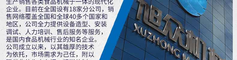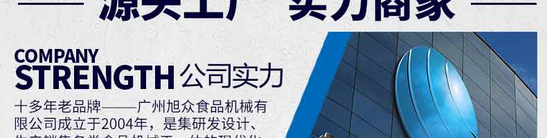 廣州旭眾食品機(jī)械有限公司是一家集科研開(kāi)發(fā),生產(chǎn)設(shè)計(jì),營(yíng)銷服務(wù)為一體的現(xiàn)代化生產(chǎn)企業(yè)?,F(xiàn)代化生產(chǎn)車間,精湛制造技術(shù),所產(chǎn)機(jī)械歷經(jīng)市場(chǎng)重重考驗(yàn),不斷贏得海內(nèi)外客戶的贊譽(yù)。