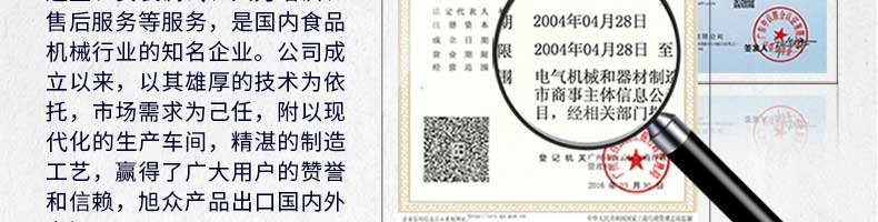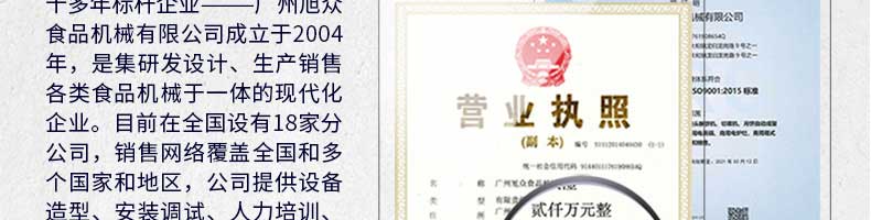 廣州旭眾食品機械有限公司是一家集科研開發(fā),生產(chǎn)設(shè)計,營銷服務(wù)為一體的現(xiàn)代化生產(chǎn)企業(yè)?,F(xiàn)代化生產(chǎn)車間,精湛制造技術(shù),所產(chǎn)機械歷經(jīng)市場重重考驗,不斷贏得海內(nèi)外客戶的贊譽。