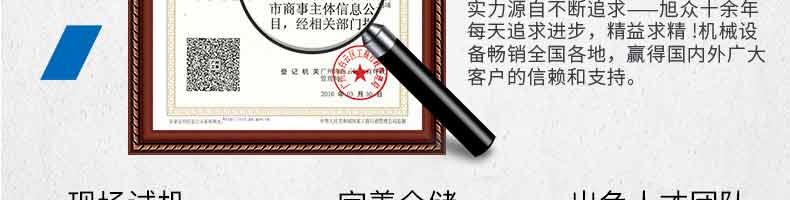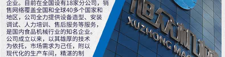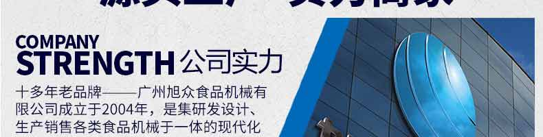 廣州旭眾食品機(jī)械有限公司是一家集科研開發(fā),生產(chǎn)設(shè)計,營銷服務(wù)為一體的現(xiàn)代化生產(chǎn)企業(yè)?,F(xiàn)代化生產(chǎn)車間,精湛制造技術(shù),所產(chǎn)機(jī)械歷經(jīng)市場重重考驗,不斷贏得海內(nèi)外客戶的贊譽(yù)。
