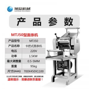 名稱50型全自動壓面面條機 電源220v 功率1.5kw 產(chǎn)量50kg/h 尺寸700*450*1100mm 重量95kg 規(guī)格 其他