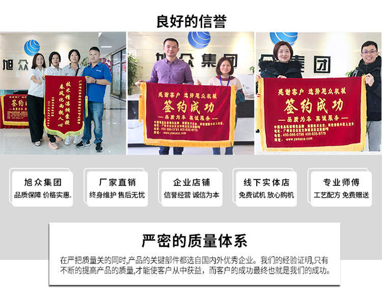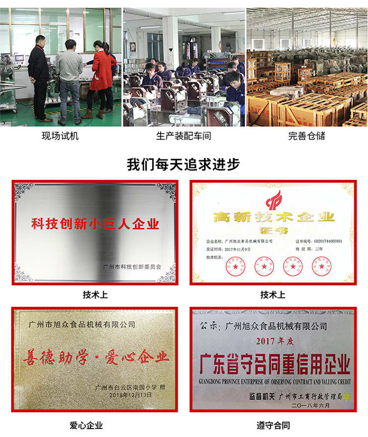 廣州旭眾食品機械有限公司是一家集科研開發(fā),生產設計,營銷服務為一體的現代化生產企業(yè)?,F代化生產車間,精湛制造技術,所產機械歷經市場重重考驗,不斷贏得海內外客戶的贊譽。