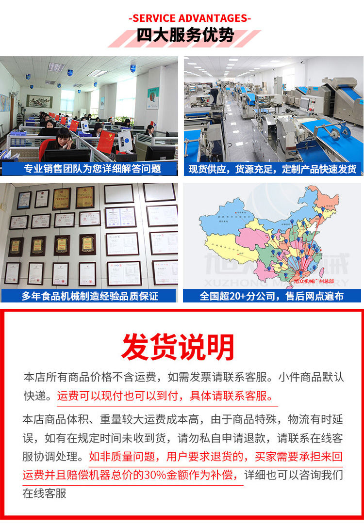 廣州旭眾食品機(jī)械有限公司是一家集科研開發(fā),生產(chǎn)設(shè)計(jì),營銷服務(wù)為一體的現(xiàn)代化生產(chǎn)企業(yè)?,F(xiàn)代化生產(chǎn)車間,精湛制造技術(shù),所產(chǎn)機(jī)械歷經(jīng)市場(chǎng)重重考驗(yàn),不斷贏得海內(nèi)外客戶的贊譽(yù)。