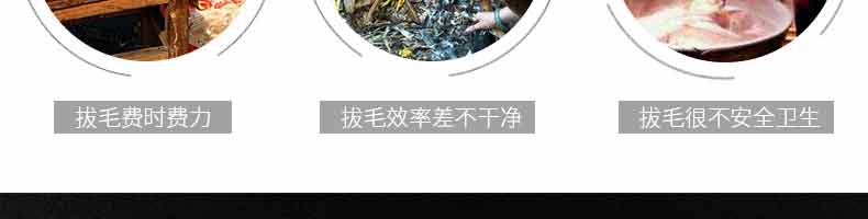 鵝鴨型脫毛機,本機用于雞、鴨、鵝宰殺后的自動脫毛,還可用于脫姜皮、脫馬鈴薯皮、脫魚鱗等農(nóng)產(chǎn)品。本機操作簡單,省力、省時間、工作效率相當(dāng)于十多個人的手工勞動。