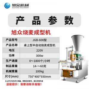 名稱JGB-600燒麥機(jī) 電源220V 功率300w 產(chǎn)量生產(chǎn)速度0~1800個(gè)/小時(shí) 尺寸750*400*930mm 重量制品重量14-~60克、機(jī)械重量100kg 規(guī)格 其他