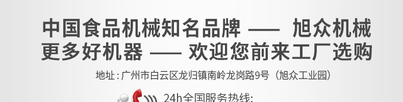 廣州旭眾食品機(jī)械有限公司是一家集科研開發(fā),生產(chǎn)設(shè)計(jì),營(yíng)銷服務(wù)為一體的現(xiàn)代化生產(chǎn)企業(yè)?,F(xiàn)代化生產(chǎn)車間,精湛制造技術(shù),所產(chǎn)機(jī)械歷經(jīng)市場(chǎng)重重考驗(yàn),不斷贏得海內(nèi)外客戶的贊譽(yù)。