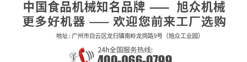 廣州旭眾食品機械有限公司是一家集科研開發(fā),生產(chǎn)設(shè)計,營銷服務(wù)為一體的現(xiàn)代化生產(chǎn)企業(yè)。現(xiàn)代化生產(chǎn)車間,精湛制造技術(shù),所產(chǎn)機械歷經(jīng)市場重重考驗,不斷贏得海內(nèi)外客戶的贊譽。