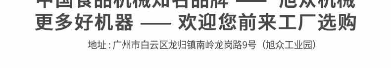 廣州旭眾食品機械有限公司是一家集科研開發(fā),生產(chǎn)設(shè)計,營銷服務(wù)為一體的現(xiàn)代化生產(chǎn)企業(yè)?,F(xiàn)代化生產(chǎn)車間,精湛制造技術(shù),所產(chǎn)機械歷經(jīng)市場重重考驗,不斷贏得海內(nèi)外客戶的贊譽。