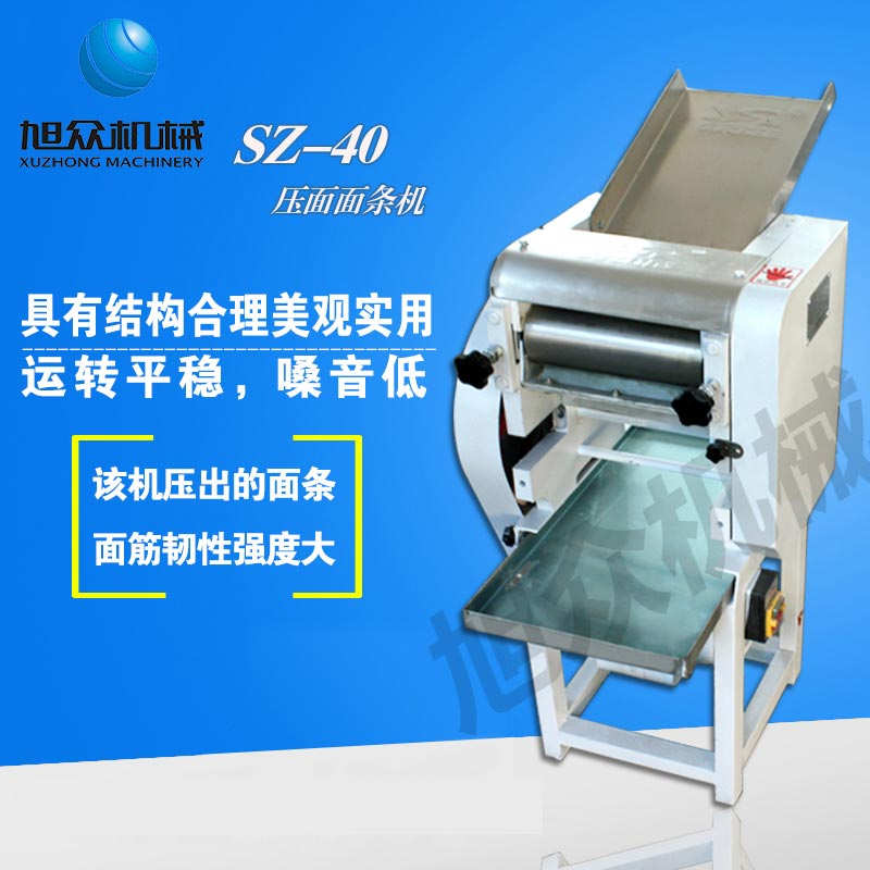 SZ40、SZ60壓面面條機(jī)系列,本機(jī)壓面、揉面一機(jī)兩用,用于制作面條、云吞皮、糕點(diǎn)、面點(diǎn)等食品,生產(chǎn)的產(chǎn)品韌性大、耐煮、不易斷,適合于賓館、飯店、食堂、面包廠及各類面點(diǎn)加工單位或個(gè)體商戶使用。