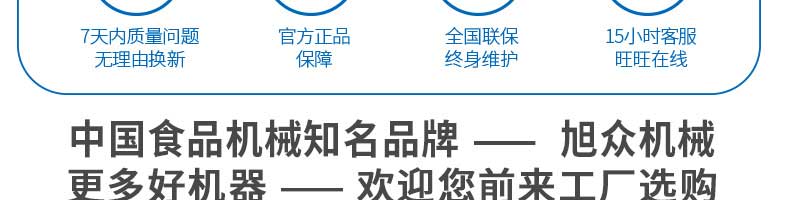 廣州旭眾食品機(jī)械有限公司是一家集科研開發(fā),生產(chǎn)設(shè)計,營銷服務(wù)為一體的現(xiàn)代化生產(chǎn)企業(yè)?,F(xiàn)代化生產(chǎn)車間,精湛制造技術(shù),所產(chǎn)機(jī)械歷經(jīng)市場重重考驗(yàn),不斷贏得海內(nèi)外客戶的贊譽(yù)。