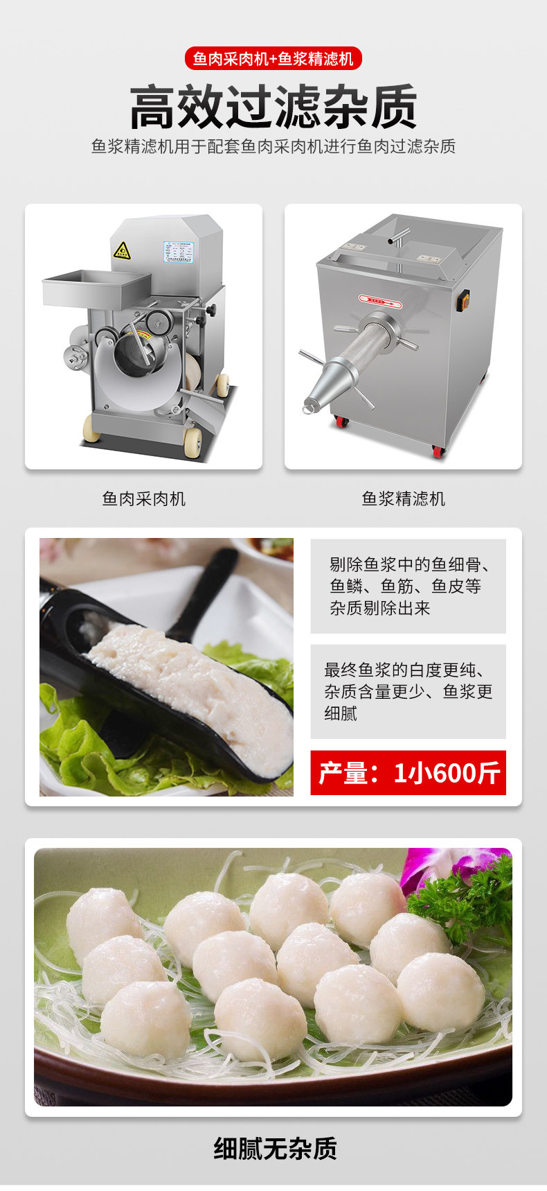 SZJ-300魚漿精濾機(jī),商用創(chuàng)業(yè)魚漿精濾機(jī),用于配套魚肉采肉機(jī)進(jìn)行魚肉過濾雜質(zhì)。節(jié)省人工開支,人工加工魚漿,效率慢剔除魚細(xì)骨,不干凈,有了魚漿精濾機(jī),一人就可以很快制作多種魚漿。